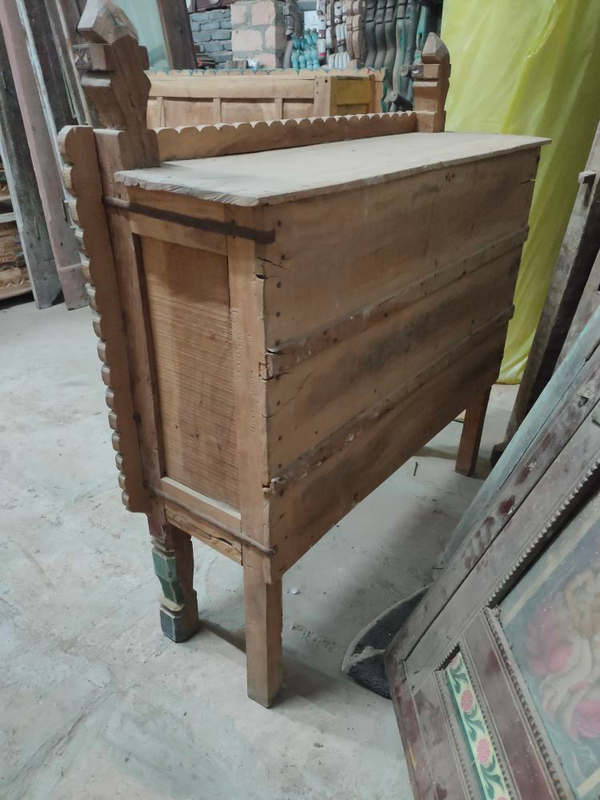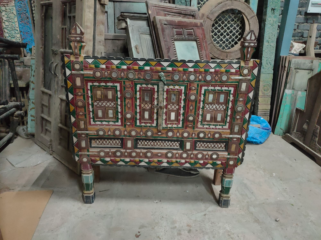 Antique Hand Carved Hand Painted Mirror Work Wooden Damchiya